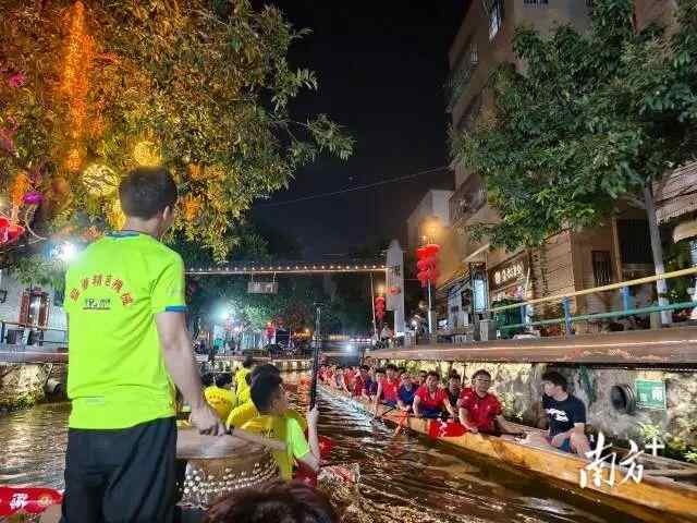 南海叠滘的河道呈典型的岭南水乡风貌,蜿蜒曲折且宽窄不一,最窄处仅容两艘龙舟并行。这样独特的河道地形,造就了全球独一无二的龙船漂移赛道。2017年,“叠滘弯道赛龙船”入选佛山市第六批市级非物质文化遗产项目名录。