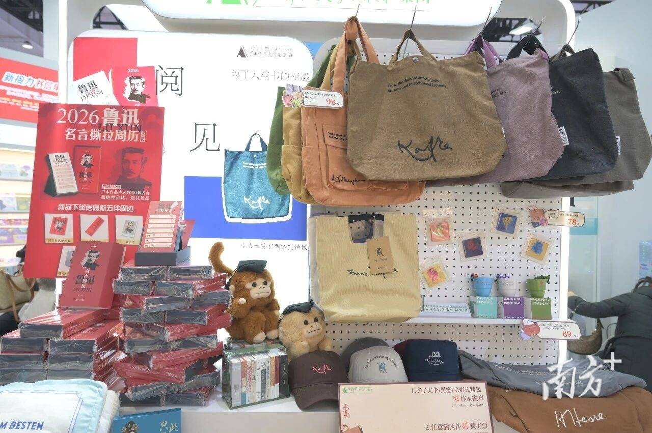 据了解,2026年是鲁迅逝世90周年,广西师大出版社专门推出鲁迅名言周历,这款产品从《鲁迅全集》中精选出365句名言,涵盖读书、做事、为人等维度,期望建造一座架通今昔的桥梁,让鲁迅的思想光芒直抵读者内心。黑塞、卡夫卡等包袋则是兼具实用性与设计的“看家”长销品,开发以来一直受到文学爱好者的追捧。