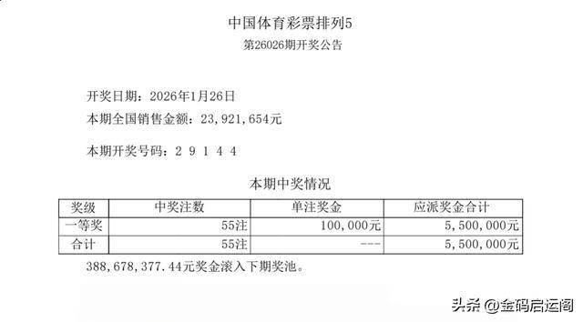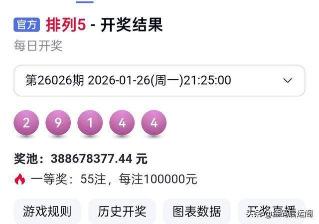 六合彩,六合彩开奖结果,六合彩预测,六合彩走势图,六合彩投注,六合彩技巧,六合彩结果今期,六合彩玩法排列5第26026期开奖结果揭晓。当期全国销售额超过2392万元,开奖号码为:2、9、1、4、4。