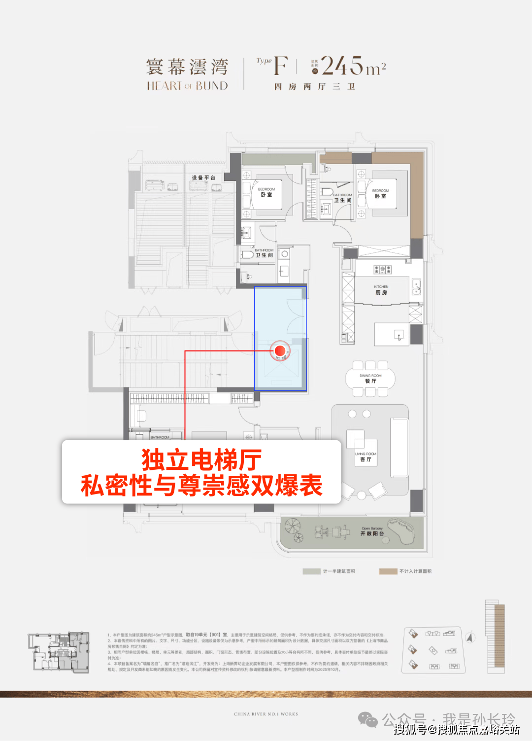 设计背书由问鼎国际大奖的著名设计师吴滨操刀,延续其“汤臣一品5亿顶复”的“摩登东方”理念。以黄浦江为灵感,营造“阅尽千帆后的宁静与松弛感”。通过8.5米南向宽厅、270°环幕玻璃、无冗余装饰的减法美学,让空间如江面般舒展,视野极度开阔。
